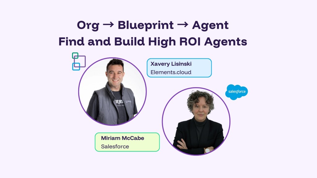 Elements.cloud is trusted by Salesforce Professional Services, to deliver high ROI agents for their top accounts, fast. Not sure where to start with Agentforce? Sign up for our upcoming webinar, to hear from Miriam McCabe, RVP Head of Global Innovation Design, alongside Xavery Lisinski, Chief Product Officer, Elements.cloud, about our newly launched Agent Finder capability.…