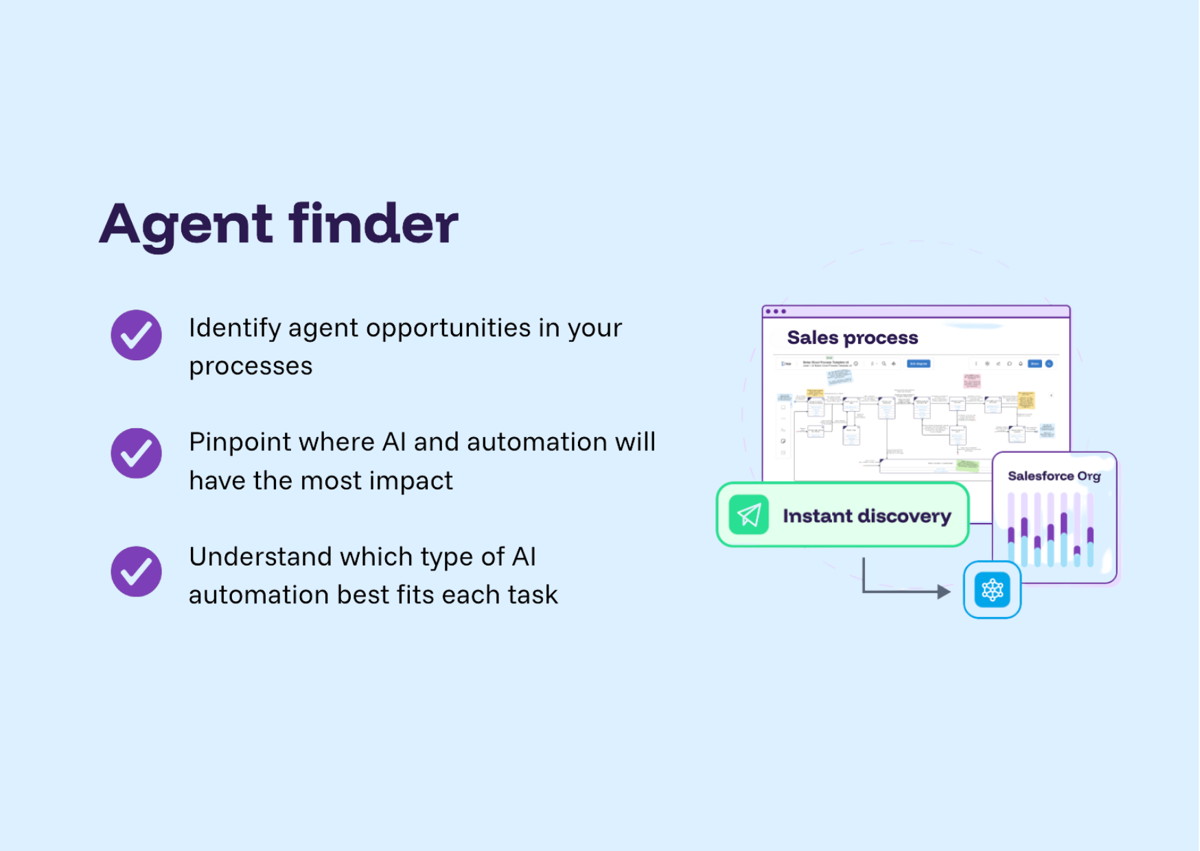In this 2-minute explainer and demo, see how Agent Finder analyzes your business processes and identifies exactly where AI Agents or other automations will deliver the most impact.