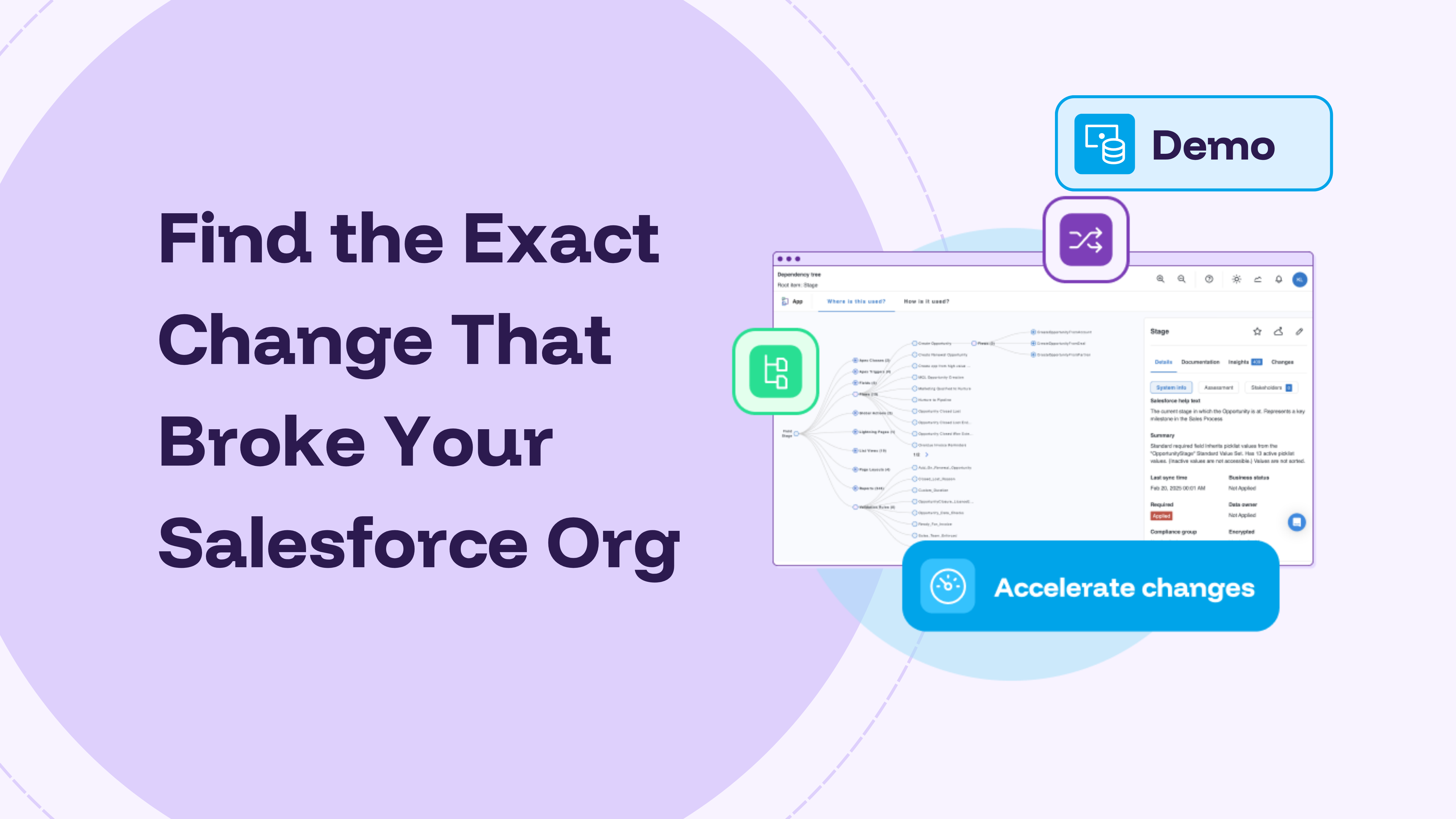 Find the Exact Change That Broke Your Salesforce Org When something breaks in Salesforce, the biggest challenge is identifying the precise change that caused it. Instead of digging through configurations or guessing what changed, get instant, line-level visibility into your metadata, with Elements.cloud. In this video, you’ll see how Elements.cloud helps you: Compare metadata changes instantly and pinpoint the root cause of issues in your Salesforce. Watch now. When something breaks in Salesforce, the biggest challenge is identifying the precise change that caused it. Instead of digging through configurations or guessing what changed, get instant, line-level visibility into your metadata, with Elements.cloud. In this video, you’ll see how Elements.cloud helps you: Compare previous and current versions of metadata See exact changes at a granular level Identify who made the change and when Pinpoint the exact update causing an issue Compare metadata changes instantly and pinpoint the root cause of issues in your Salesforce. Watch now. Post navigation Previous webinarStop Firefighting. Track Every Change in Salesforce.Next webinarSpot Risk Before It Breaks Salesforce Back to webinars Share